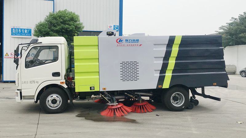 1、采用吸掃結(jié)合的方式收集垃圾,濕式除塵、電液控制,液壓傾翻卸料的作業(yè)方式對路面進行清掃作業(yè)。