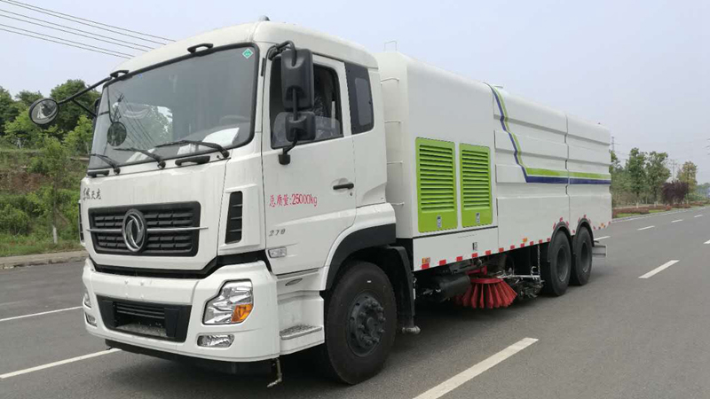 - 底盤發(fā)動(dòng)機(jī)驅(qū)動(dòng)洗掃車向前行走,掃至吸嘴前方的垃圾不斷進(jìn)入到吸嘴中,并源源不斷地被吸到垃圾箱中,實(shí)現(xiàn)路面清掃。