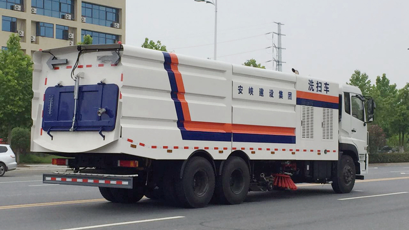 6)具備倒車保護(hù)裝置,在作業(yè)過(guò)程中如遇緊急倒車,智能化的控制系統(tǒng)會(huì)自動(dòng)停止作業(yè)并收回掃盤、吸盤和側(cè)噴桿;具有防止舉升垃圾箱翻車保護(hù);具有檢修安全保護(hù)。